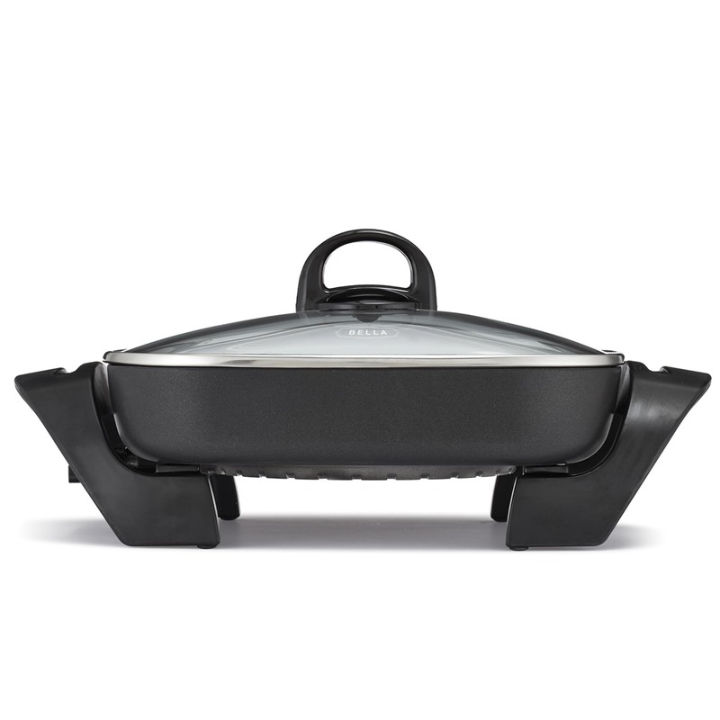 bella Electric Skillet and Frying Pan with Glass Lid, Nonstick Coating, Cool Touch Handles, Removable Heating Probe, Dishwasher Safe, 12 x 12 inch, Black, PFOA & PTFE Free