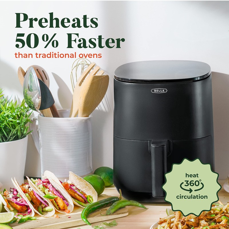 BELLA 2.9QT Touchscreen Air Fryer Oven and 5-in-1 Multicooker with Removable NonstickDishwasher Safe Crisping Tray and Basket, 1400 Watt Heating System, Matte Black