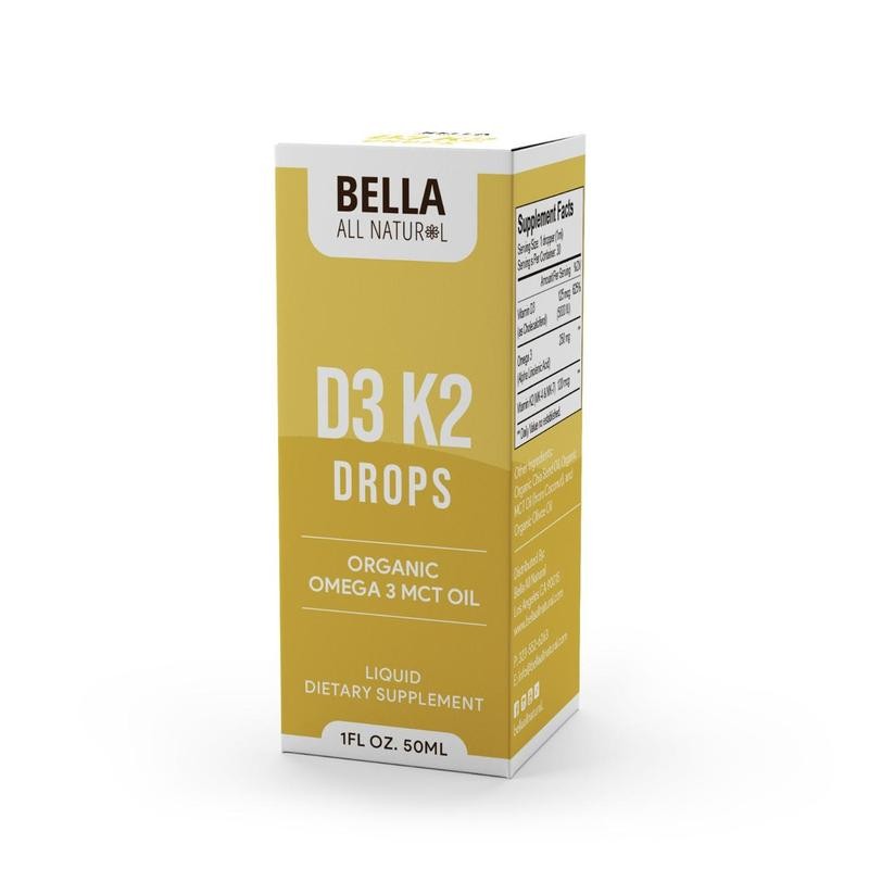 - Bella All Natural D3 K2 Drops Organic Omega 3 MCT Oil 50ml Supplement for Daily Health Needs
