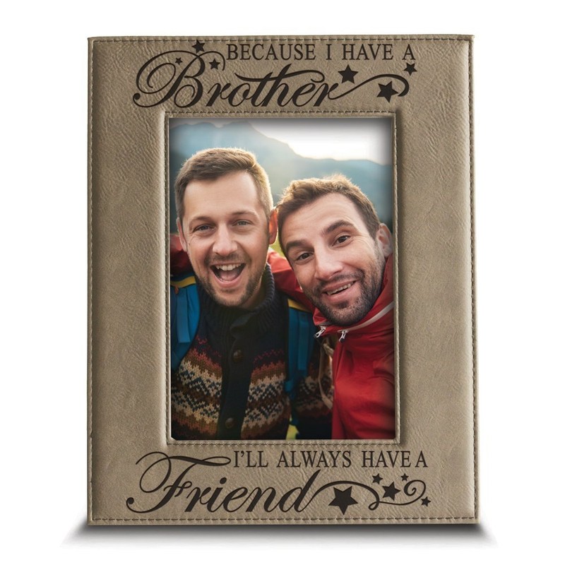 BELLA BUSTA -Brothers Picture Frame- Engraved Leather Picture Frame (4"x 6" Vertical)