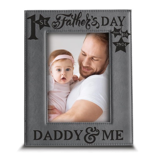 BELLA BUSTA- First Father's Day -1st Father's Day Picture Frame- Daddy and Me Frame Engraved Leather Picture Frame (5x 7 Vertical)