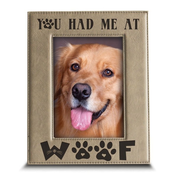 BELLA BUSTA- You Had Me at Woof- Dog Lover Gift-Dog Frame-Pet Frame-Engraved Leather Picture Frame (4"x 6" Vertical)