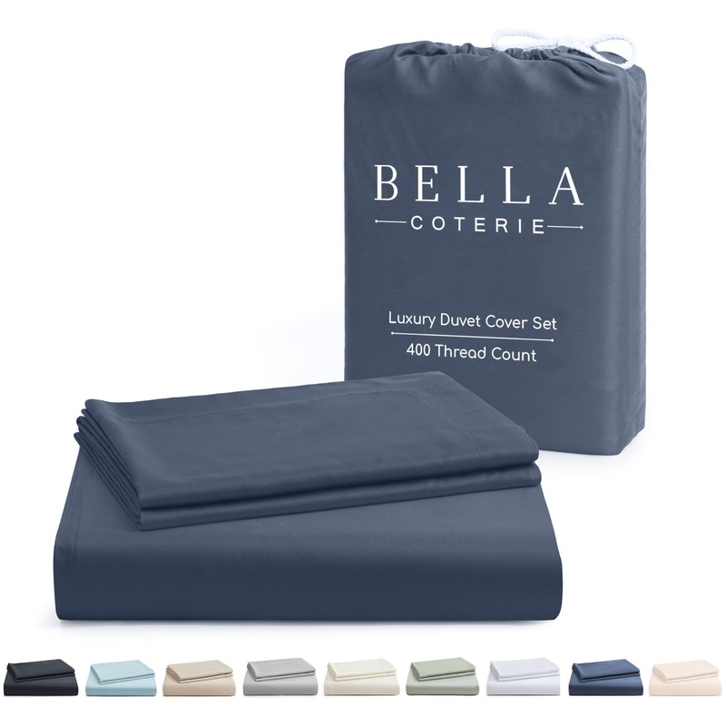 Bella Coterie Luxury Bamboo Queen Size Duvet Cover Set | Organically Grown | Ultra Soft | Cooling | Two Luxury Pillow Shams | Bamboo Viscose Bedding | 90x94 | No Insert [Slate Blue]