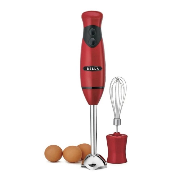 BELLA Immersion Hand Blender, Portable Mixer with Whisk Attachment - Red