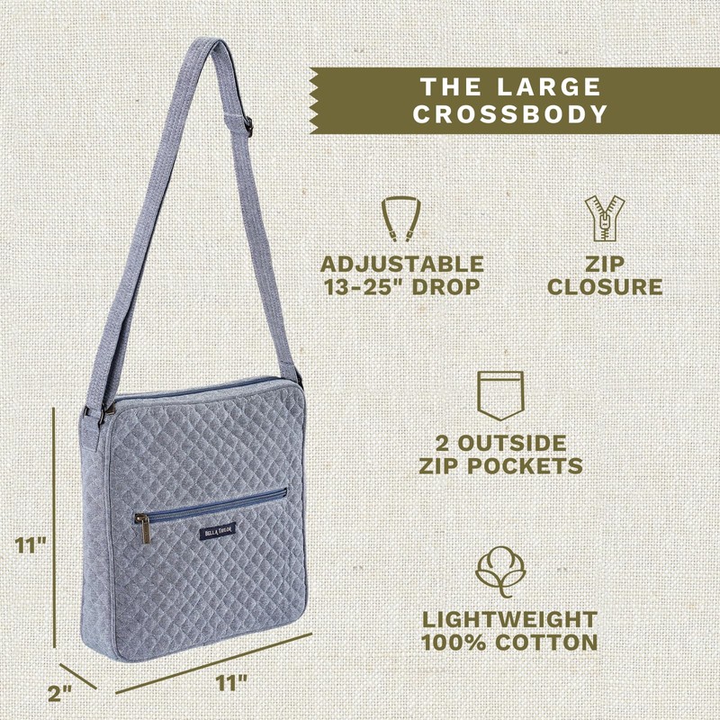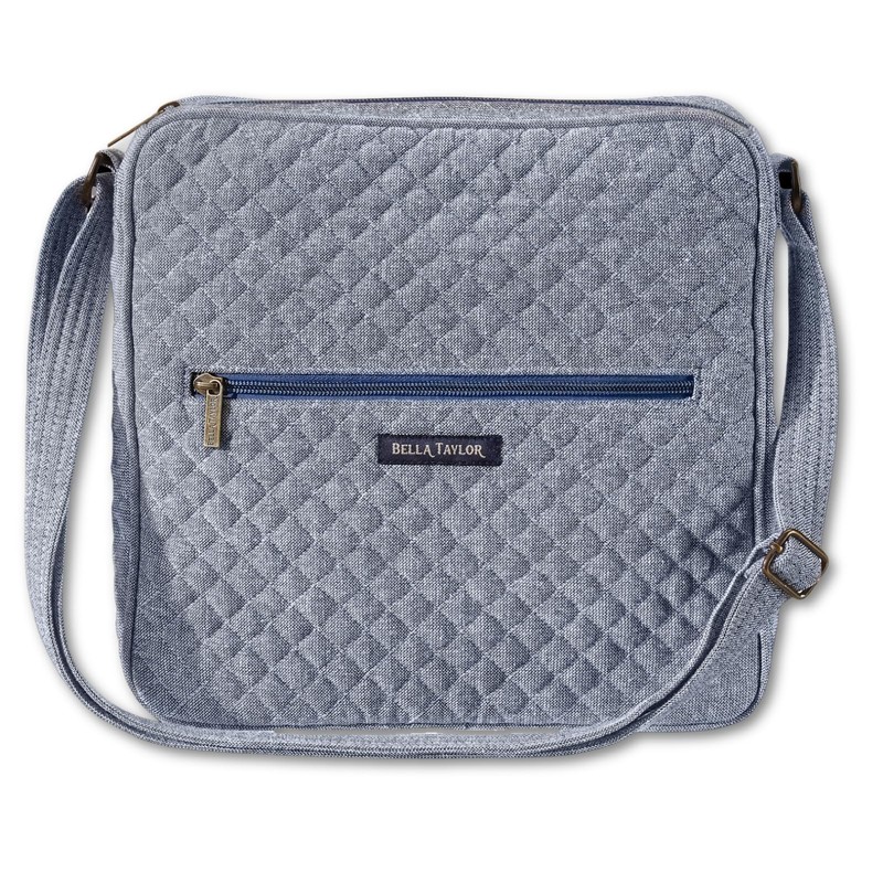 Bella Taylor Large Crossbody Purse for Women | Shoulder Bag with Adjustable Strap | Quilted Cotton Blue Chambray