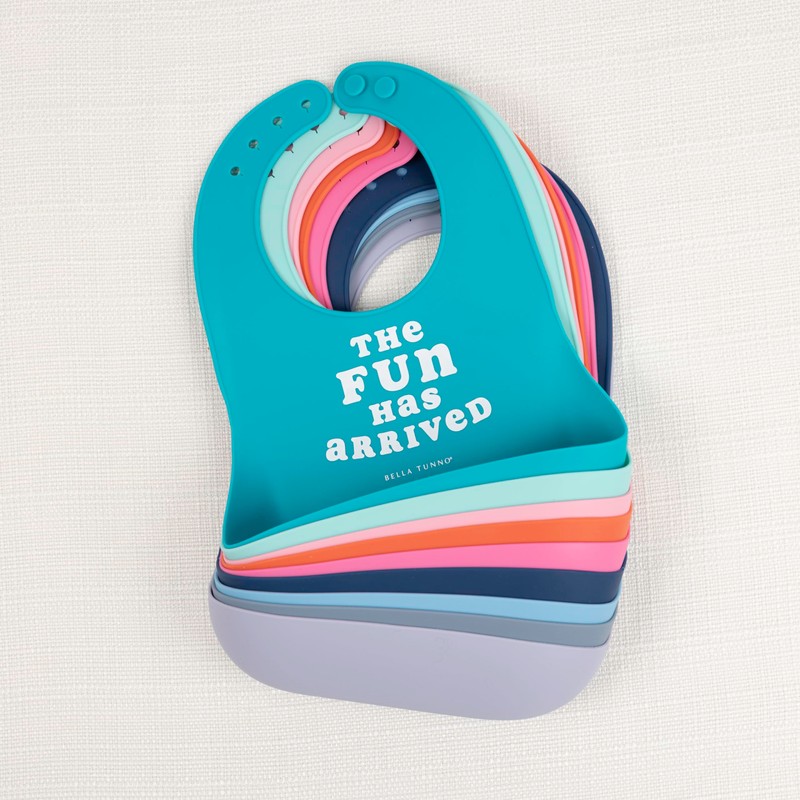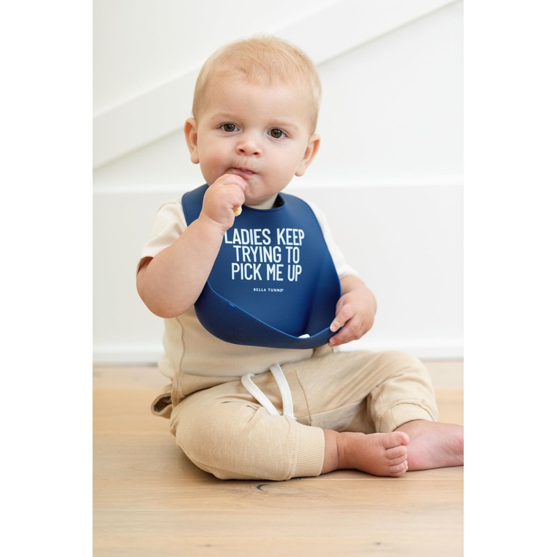 - MOM-DESIGNED: Bella Tunno’s silicone bibs for girls and boys make mealtimes easy and fun for both parents and babies. Designed by moms, our baby bibs feature an adjustable neck and a pocket for catching food, making clean-ups easy!