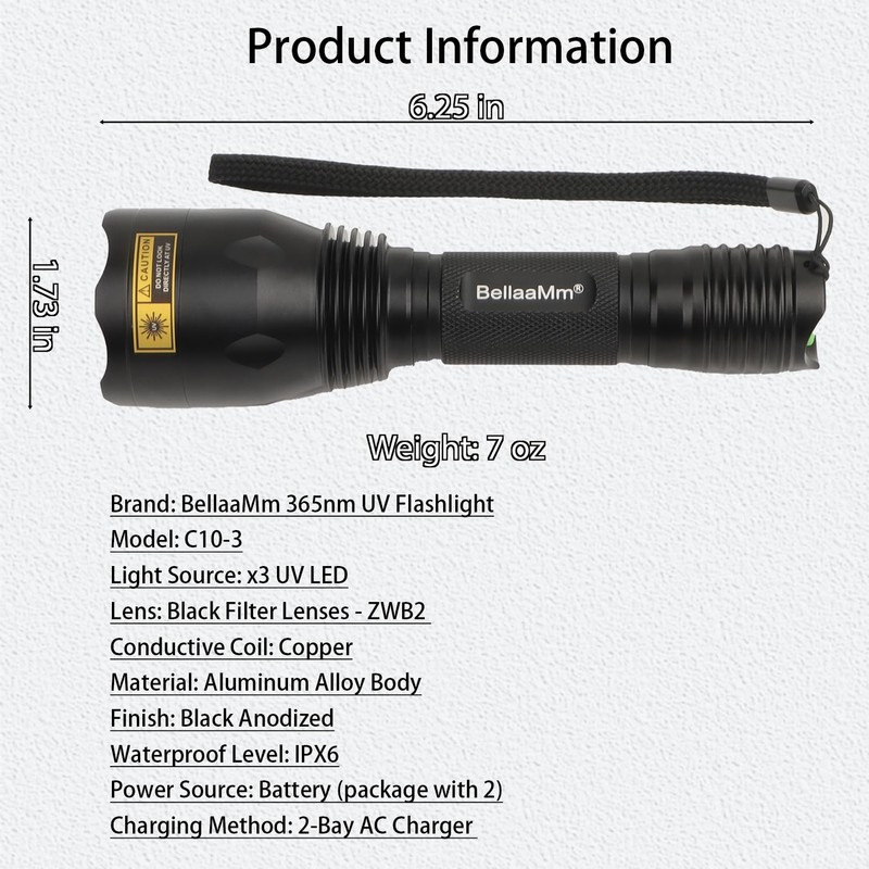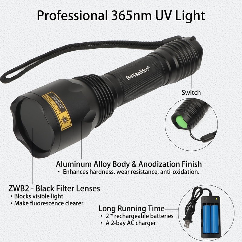 - 【Worry-Free Purchase & 1 Year Warranty】If you're looking for a powerful blacklight flashlight, this one is trusted by professionals and guaranteed to impress. BellaaMm offers 24/7 customer support and backs your purchase with a no-questions-asked refund or replacement. There’s no risk in trying.