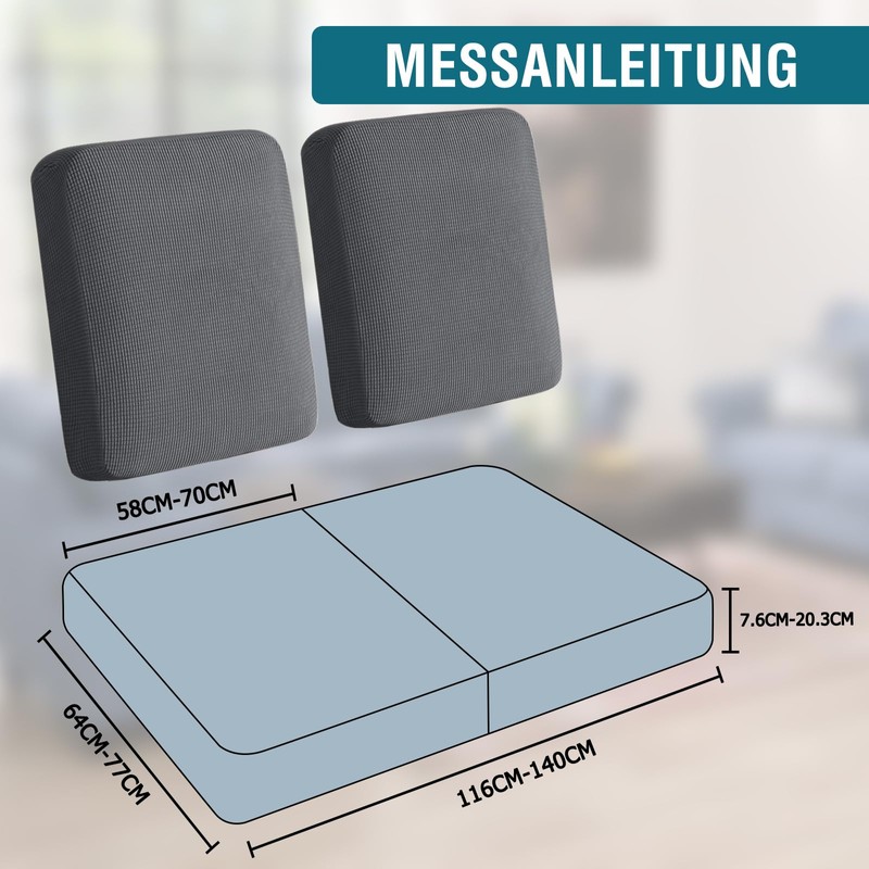 • LARGE FIT: Set of 2. This innovative sofa cushion cover is made of durable and soft, stretchy fabric. Chair seat cover (fits seating area between 58-70 cm). One size fits most, please measure before ordering. Suitable for both T-cushion and box cushion styles.