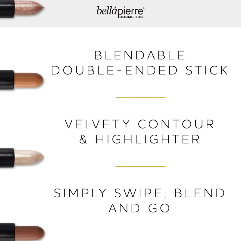 - ๐๐๐๐๐๐๐๐ ๐๐๐๐ ๐๐๐๐: Itโs your turn to shine when you wear Contour and Highlight Duo by Bellapierre! The highlighting part of this stick is full of shimmer and sparkle that will make you stand out in a crowd. Achieve a beautiful glow by applying the highlighter side to your cheekbones, the tip of your nose, and above your cupidโs bow for bright luminescence.