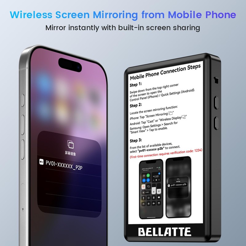Bellatte Phone Vlog Selfie Monitor with Magnetic Mount, 60fps No Delay, 4K/1080P HD Wireless, Rear Camera for TikTok/YouTube Live Stream (Support Android/iOS Phone)
