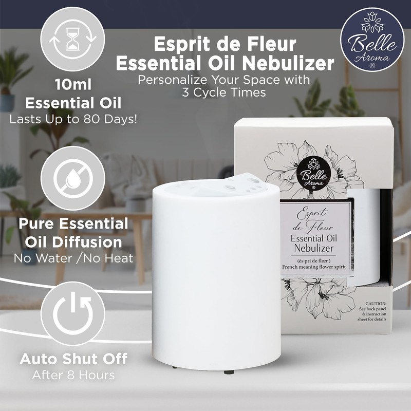 - Versatile Product: Although not battery-operated, the Belle Aroma Esprit de Fleur Essential Oil Nebulizer is highly versatile, suitable for home, bedroom, treatment rooms or office. A fantastic waterless diffuser that preserves the integrity of pure essential oils.