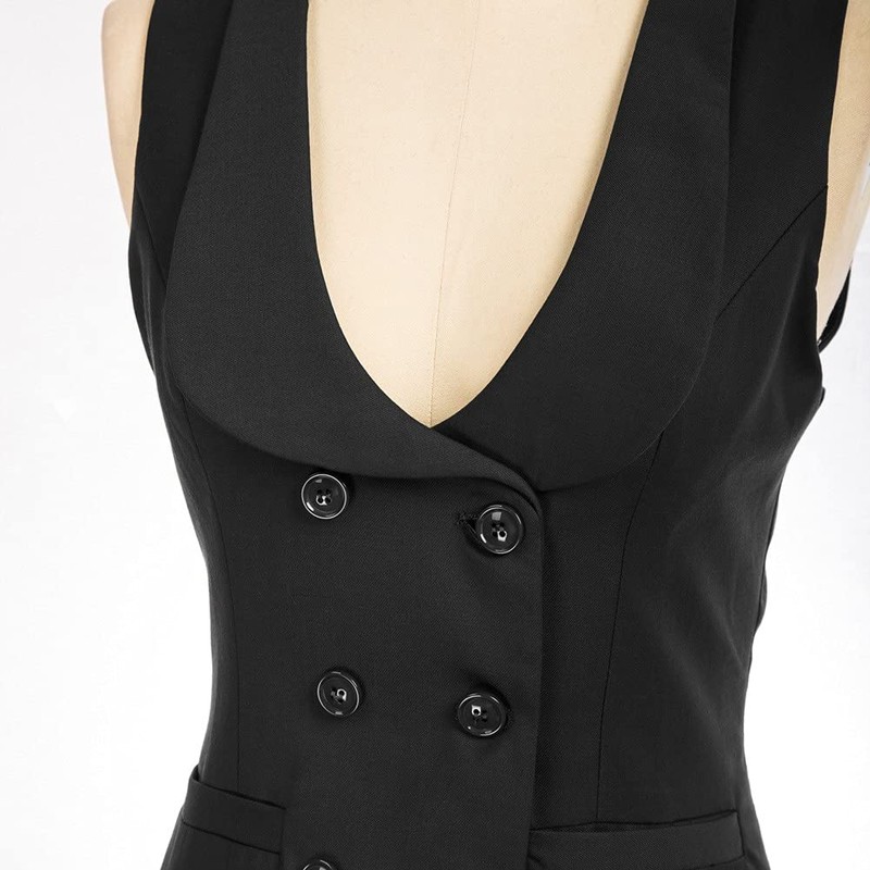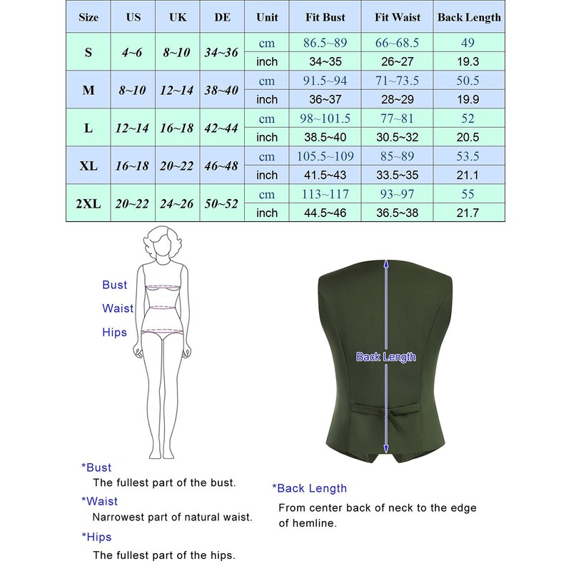 - Features: Vintage style sleeveless vests; lapel collar; double breasted; two front pockets; handkerchief hem; back waist with straps, adjustable for best fit; lined
