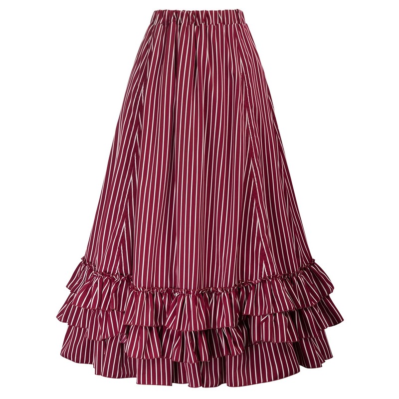 Belle Poque Womens Gothic Lolita Skirt Plus Size Steampunk Victorian Retro Pleated Ruffle Long Skirt(Wine & White,3XL)
