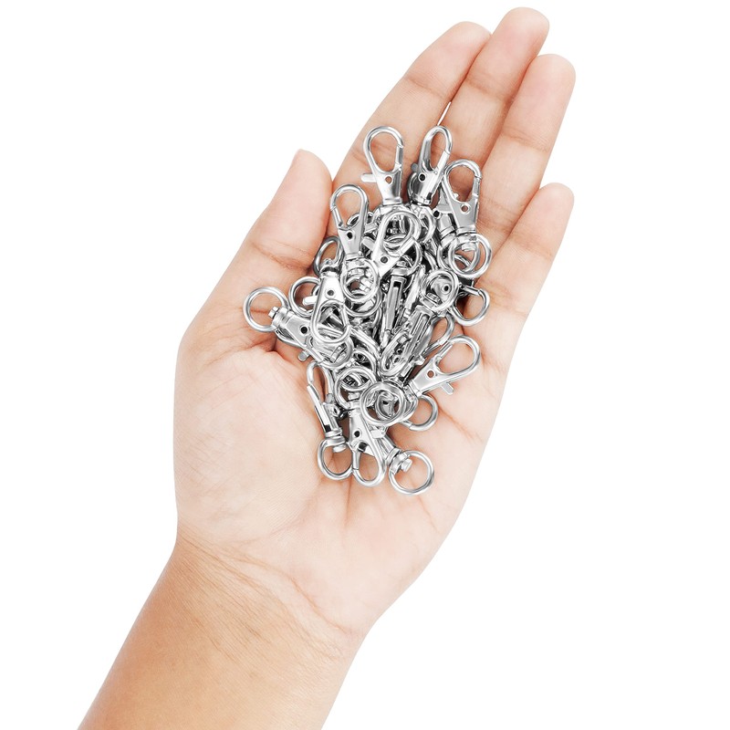 Included in this set are 50 mini silver swivel lobster clasps with 50 key rings. They can rotate a full 360 degrees and have a snap-lock mechanism, meaning they will not accidentally open.