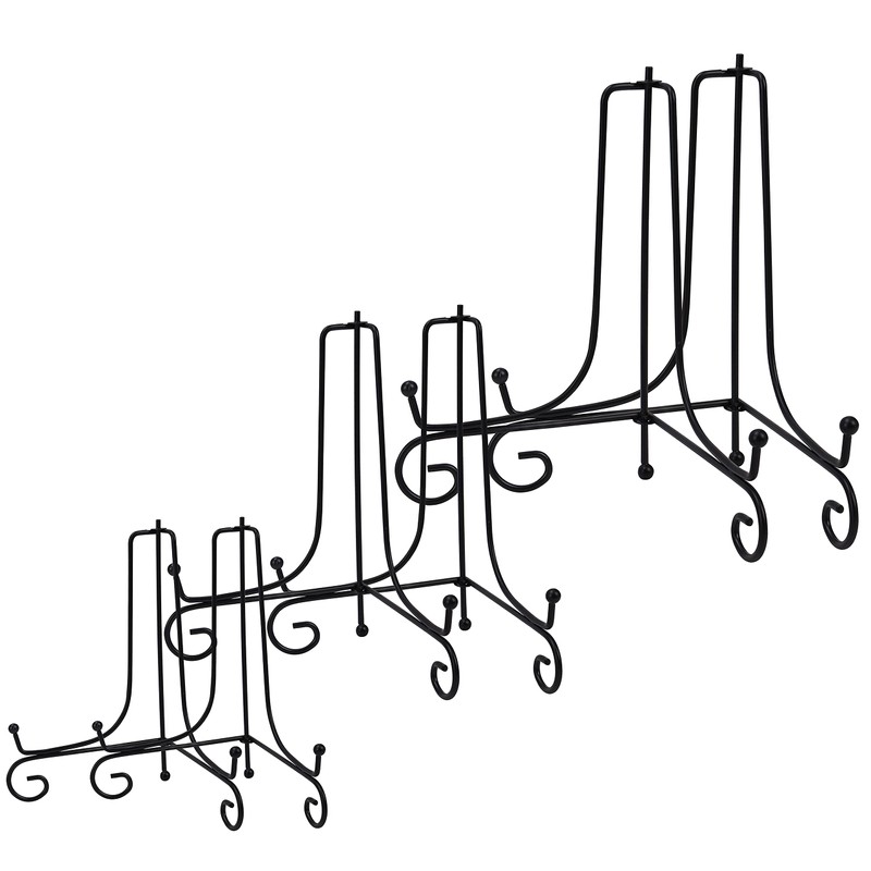 BELLE VOUS 6 Pack Plate Display Stands - 3 Sizes 10, 15 and 20cm / 4, 6 and 8 inches - Black Iron Easel Stands/Metal Frame Holders for Decorative Plates, Photos/Pictures, Tabletop Art, and Books