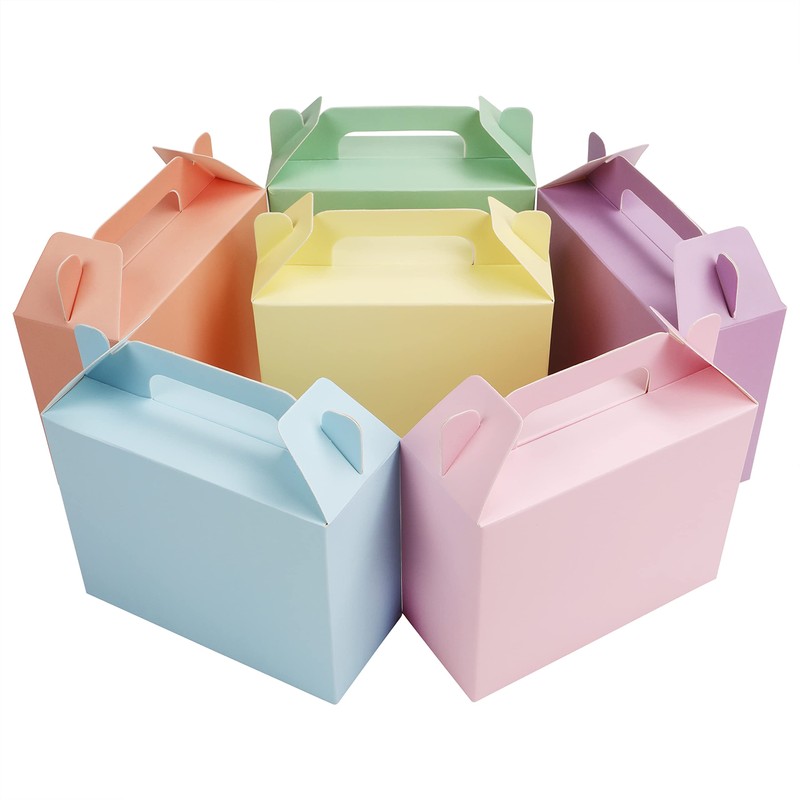 - PERFECT FOR PARTIES: As our boxes have beautiful colors, they fit perfectly at any party. Use them as gift bags, lunch boxes or party favors. Assemble them and fill them as party favors box with candy, chocolate, small toys, cupcakes, biscuits, popcorn, small stationery, food, baked goods, juice, streamers and party crackers. They hold 500-800g and are a fun way to give children their meals.