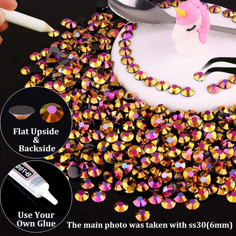 - WIDE APPLICATION -- These sparkling iridescent resin rhinestones are perfect for creating dazzling looks. Use them for face makeup, eye makeup, body art, 3D nail art or bedazzling DIY crafts like shoes, tumblers, mugs, bottles, phone cases, popsockets, scrapbooks, photo frames, diamond paintings, greeting cards, bags, glasses, guitars, keychains, hats, masks, hair clips, bracelets, wristbands, clothing, wedding dresses, and more. Apply it to what you want to bling!
