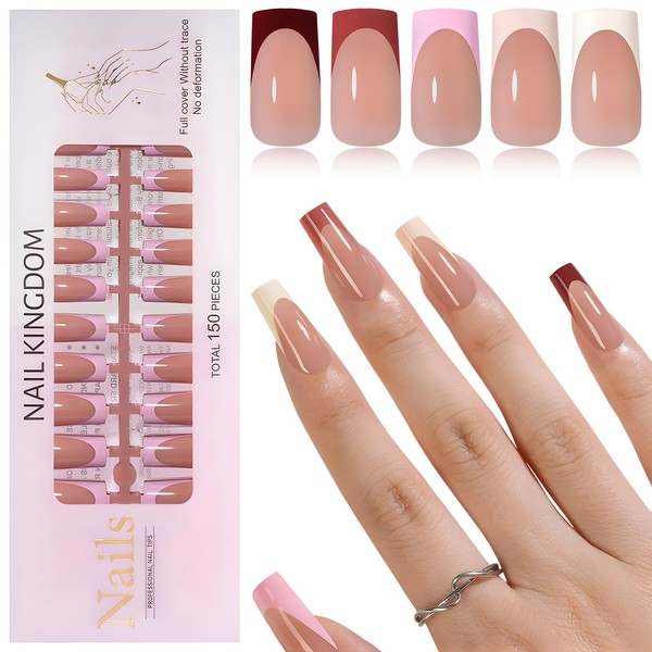 - 【French Tip Press on Nails】Each french nail kit conclude 150pcs soft gel nail tips, 1 nail file, 1 wooden stick, 5 sheets jelly glue sticker. Pre-colored French tip nails bring you neutral colors and classic designs. The fake nails are durable and long-lasting, and the pattern is not easy to wear and fall off, give your long lasting and comfortable nail art experience.