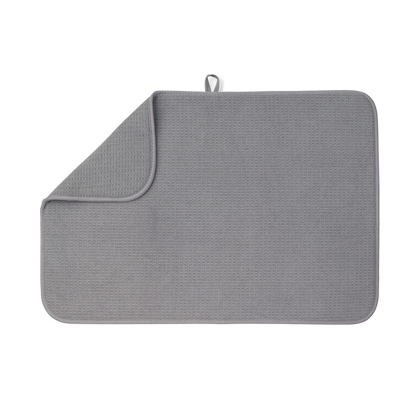 - QUICK-DRY HANG TAG | EASY STORAGE: Our manufacturing process creates naturally strong and durable dish-drying mats. Fold up and toss in a drawer or tuck it elsewhere when not in use, and simply hang with the reinforced tag to dry. Our flexible core, folded between high-tech layers of microfiber, the ideal dish dryer mats.