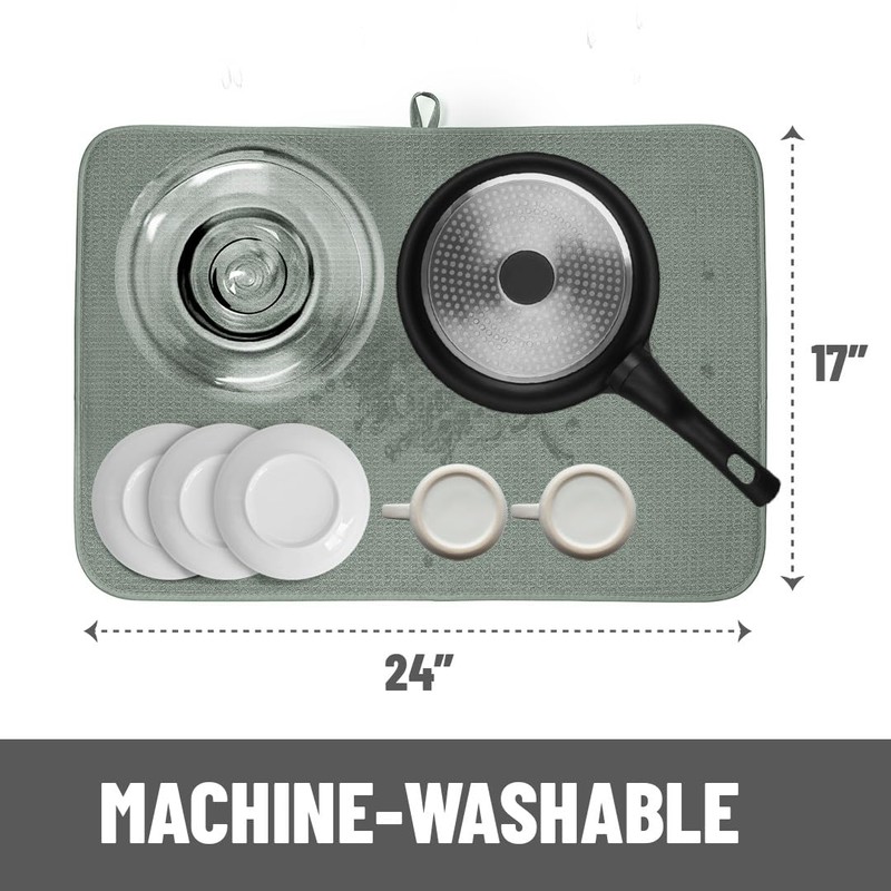 Bellemain XXL Dish Mat 24" x 17" ( LARGEST MAT ) Microfiber Dish Drying Mat , Super absorbent ( Green )