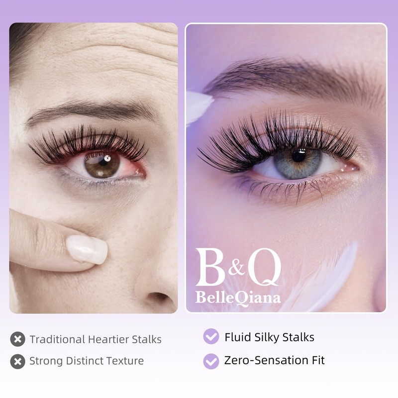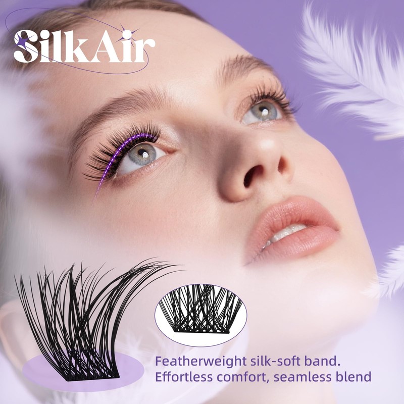 - 【Silk-Soft Comfort】Silk Air Collection LashesMade with 0.05mm silicone bands and silk-textured fibers, these cluster lashes feel lighter than a single individual eyelashes. Unlike scratchy plastic bands, our flexible design molds to hooded eyes and monolids, staying invisible even when blinking. Perfect for sensitive eyes or contact lens wearers