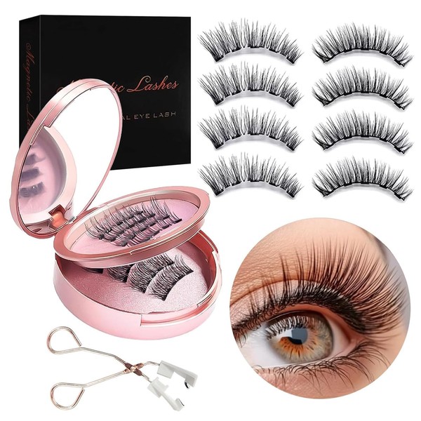 BelleVive Pack of 8 Magnetic Eyelashes, Reusable Magnetic Eyelashes with Applicator, Natural Look, Easy to Wear and No Glue Required, Magnetic Eyelashes