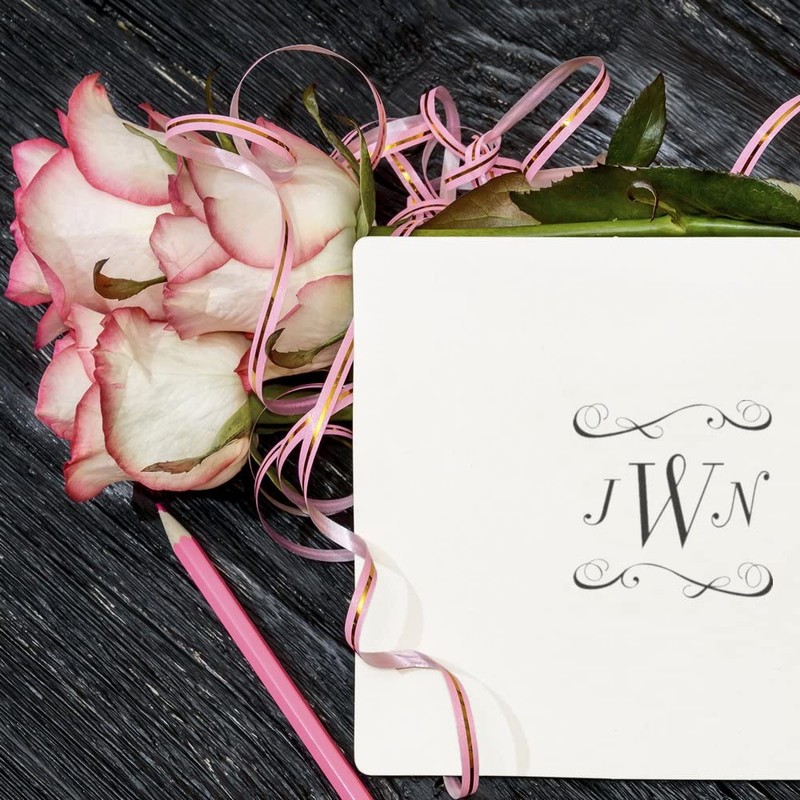 Need a monogram stamp but want one that is budget-friendly? Choose a traditional hand rubber stamp! The Bellevue Monogram stamp features your initials with the Bellevue font with a scrolled border. Perfect for a teacher gift or small wedding present. This 1-5/8" square hand stamp will leave a clean and crisp impression every time it is used.