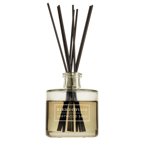 Bellevue Reed Diffuser, 6 fl oz Glass Filled Diffuser, Highly Concentrated Fragrances with Essential Oils, Home Fragrance, Scent:Driftwood Sand