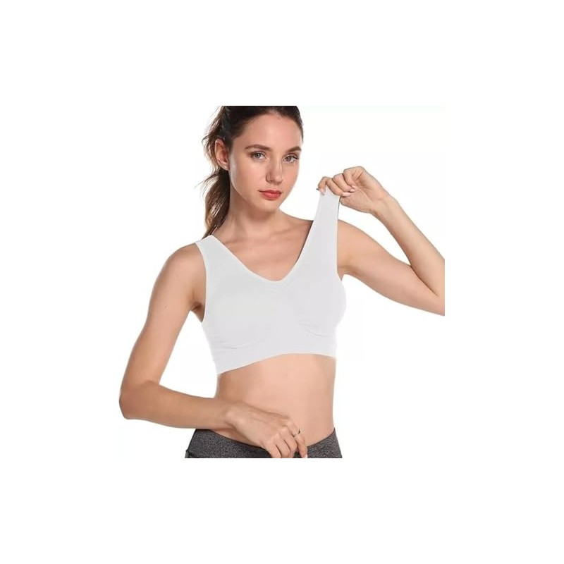 BELLEZZA BABE Women 3 Pack Seamless Sports Bra Wireless Bra Without Pading Comfort Yoga Bralette for Running Sports Fitness (UK, Alpha, XL, Regular, Regular, 3 White)