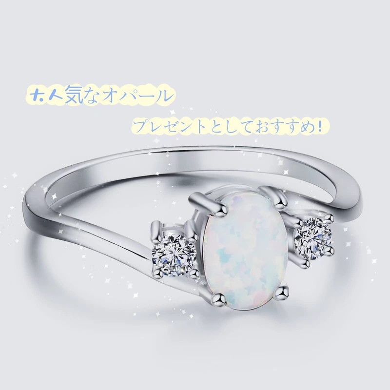 Bellitia Jewelry 925 Sterling Silver Geometric Finger Ring for Women Ladies Gemstone Birthstone White Opal CZ Cubic Zirconia Ring Jewellery Set, Opal, zirconia, 925 sterling silver, Opal Cubic