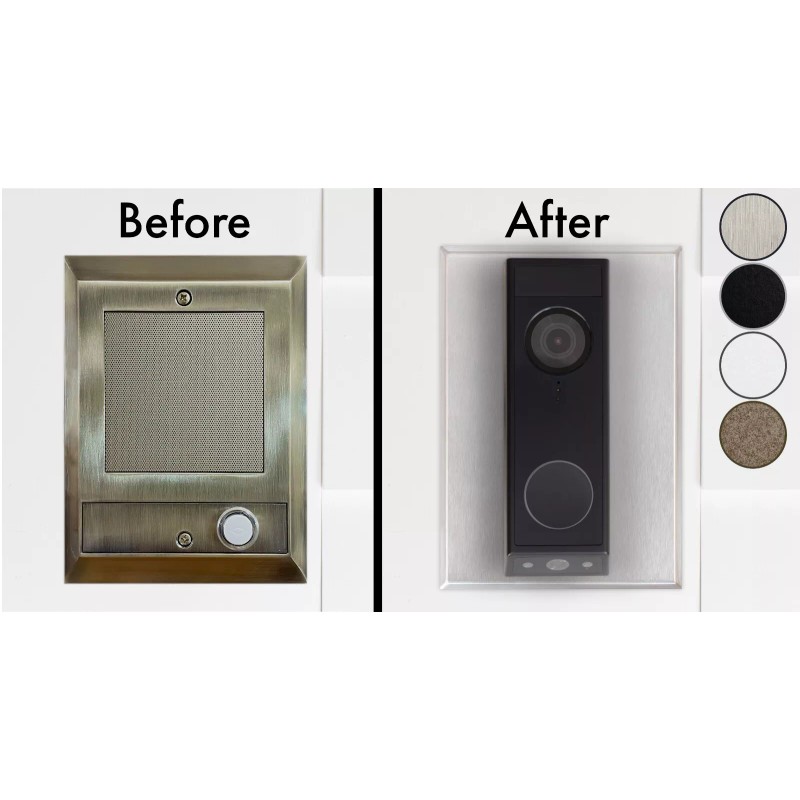 - Easy Installation: Holes are pre-drilled. Includes color-matched hardware for wall plate mounting, plus appropriate hardware for securing the video doorbell to the wall plate.