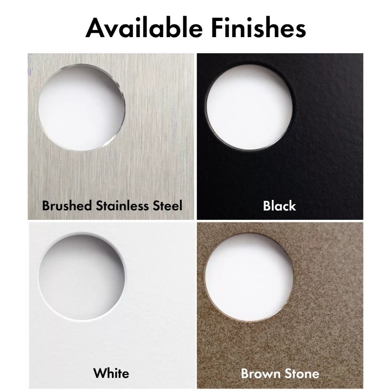 All finishes include color-matched mounting hardware for a seamless appearance.