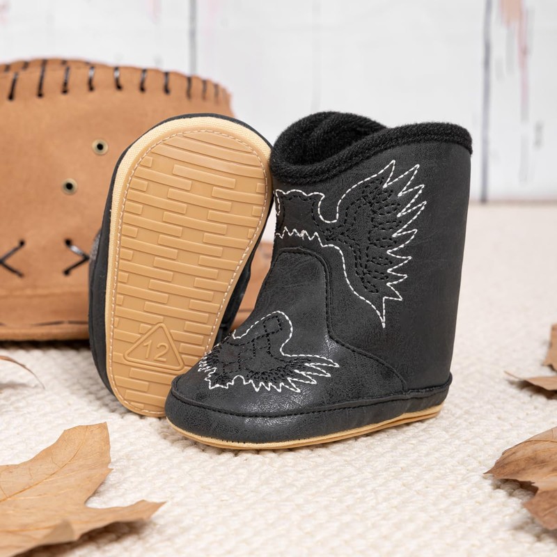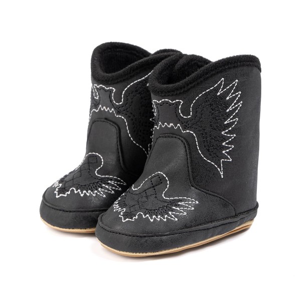 Bellocasa Baby Western Cowboy Boots Infant Boys Girls Non-Slip Soft Sole Booties Toddler Newborn First Walker Crib Shoes(JY3167 Black,2)