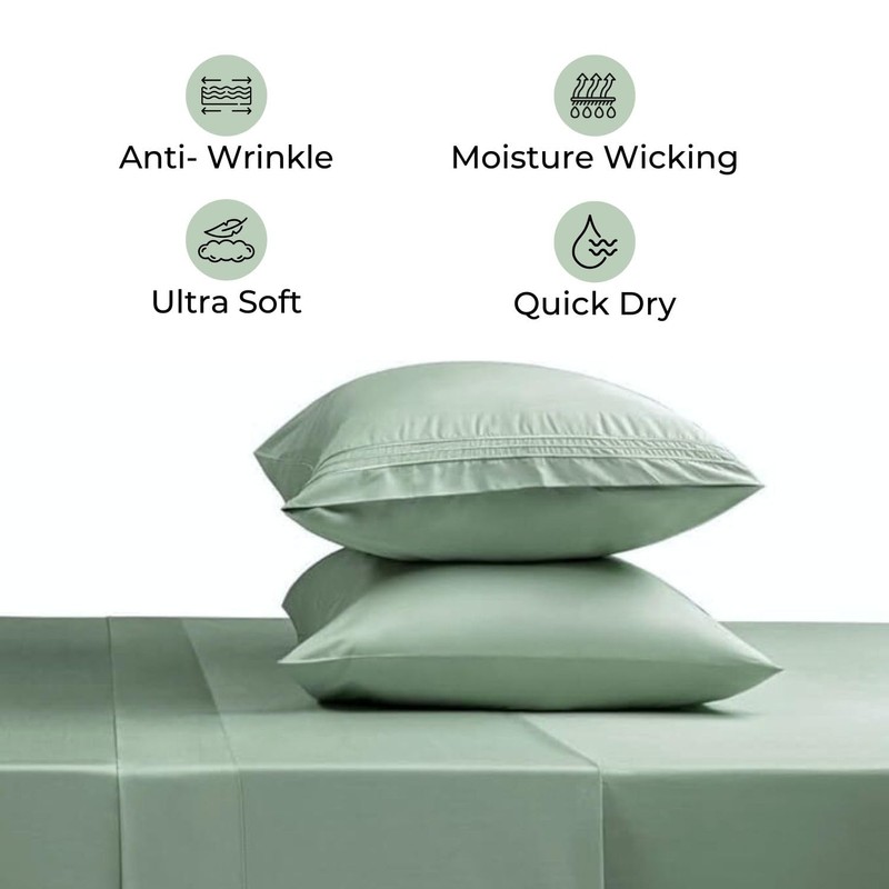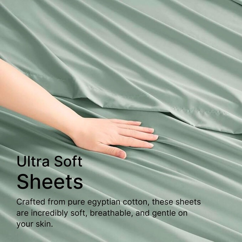 bellolin 100% Cotton Queen Size Bed Sheet Set with Deep Pocket, 400 Thread Count Extra Soft Bed Sheet, Cooling Sheets with 2 Pillow Covers - 4 Piece Set (Green)