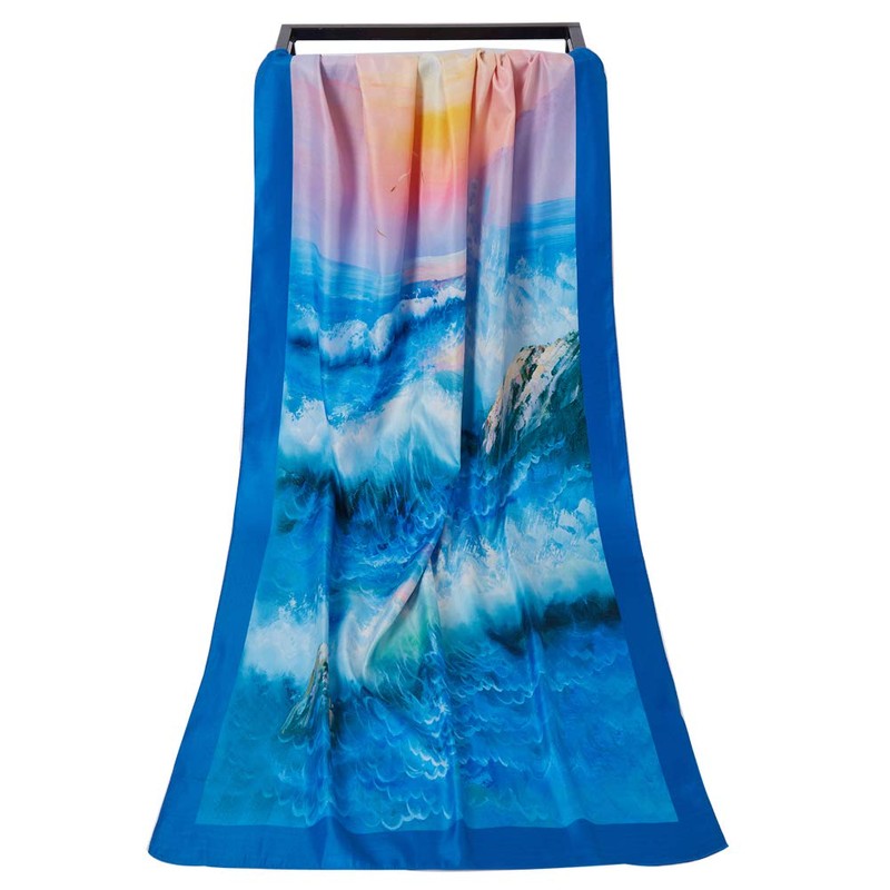 Bellonesc - Bufandas de mujer 100% seda de moda ligera pintura bufandas para mujer, Azul / Patchwork, Talla única