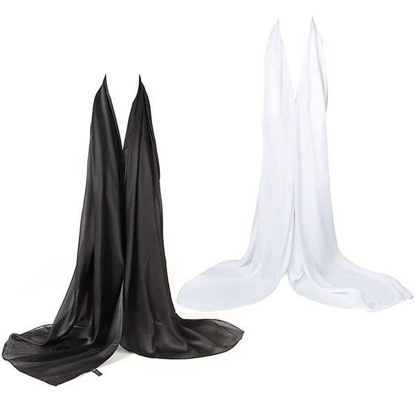 Bellonesc Silk Scarf 100% silk Long Lightweight Sunscreen Shawls for Women(black white)