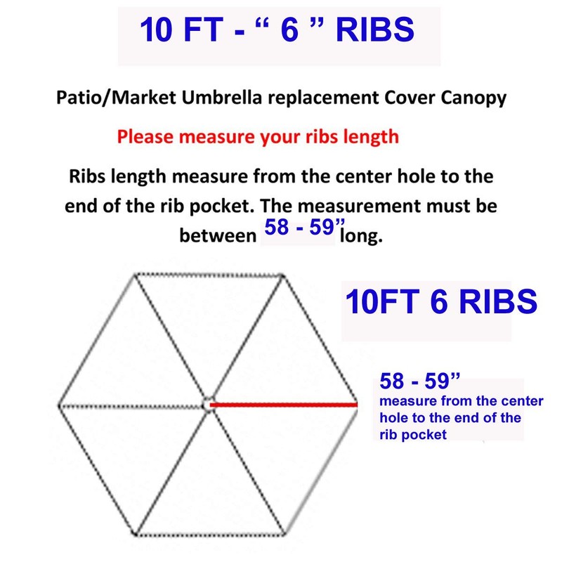 - Replacement umbrella canopy for 10 ft 6 ribs umbrella. (Canopy only)