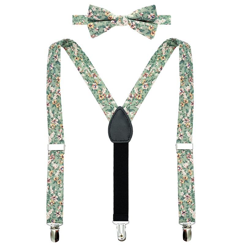 - Pre-tied floral bow tie and adjustable elastic suspenders set for boys, ideal for ringbearers at weddings, and occasions such as Easter, Christmas or children's birthday parties