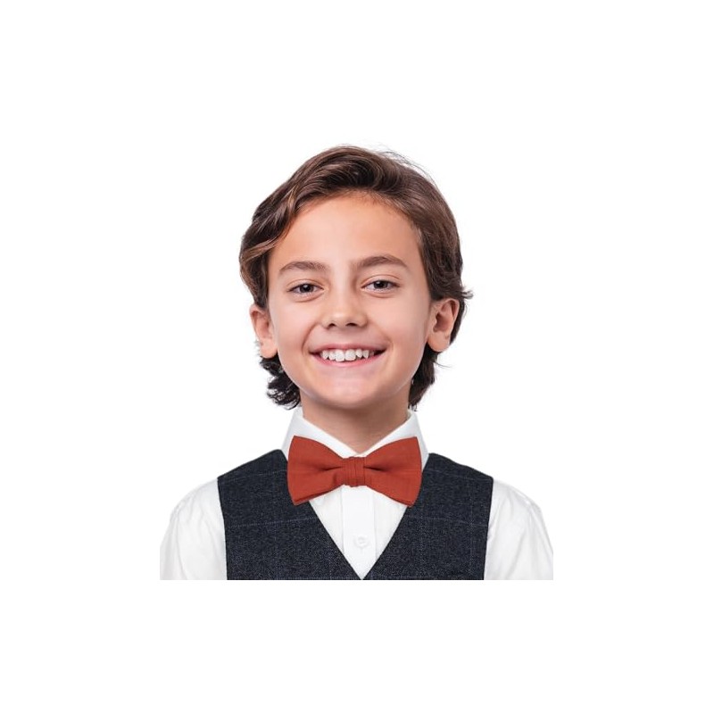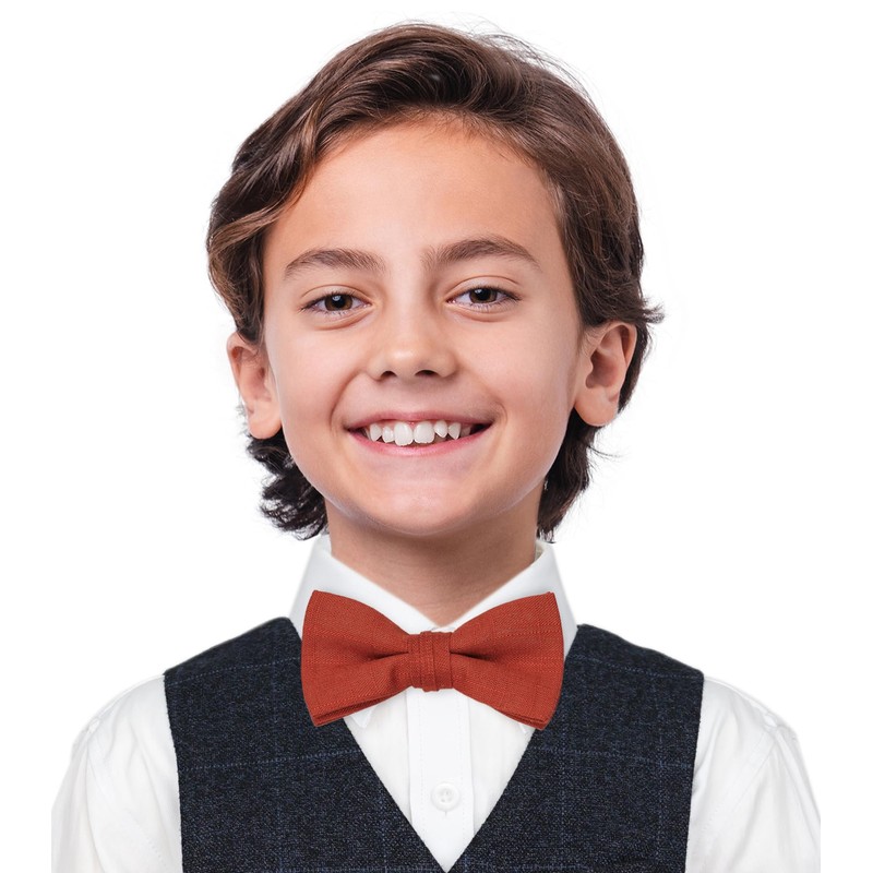 Belluno Rust Color Bow Tie Pre-Tied for Little Boys, Cotton Linen Blended Bowties