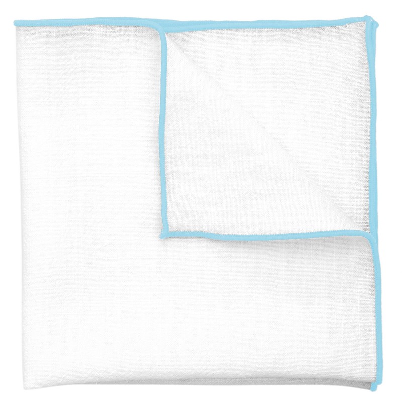 BELLUNO White Pocket Square with Embroidered Pastel Blue Edge