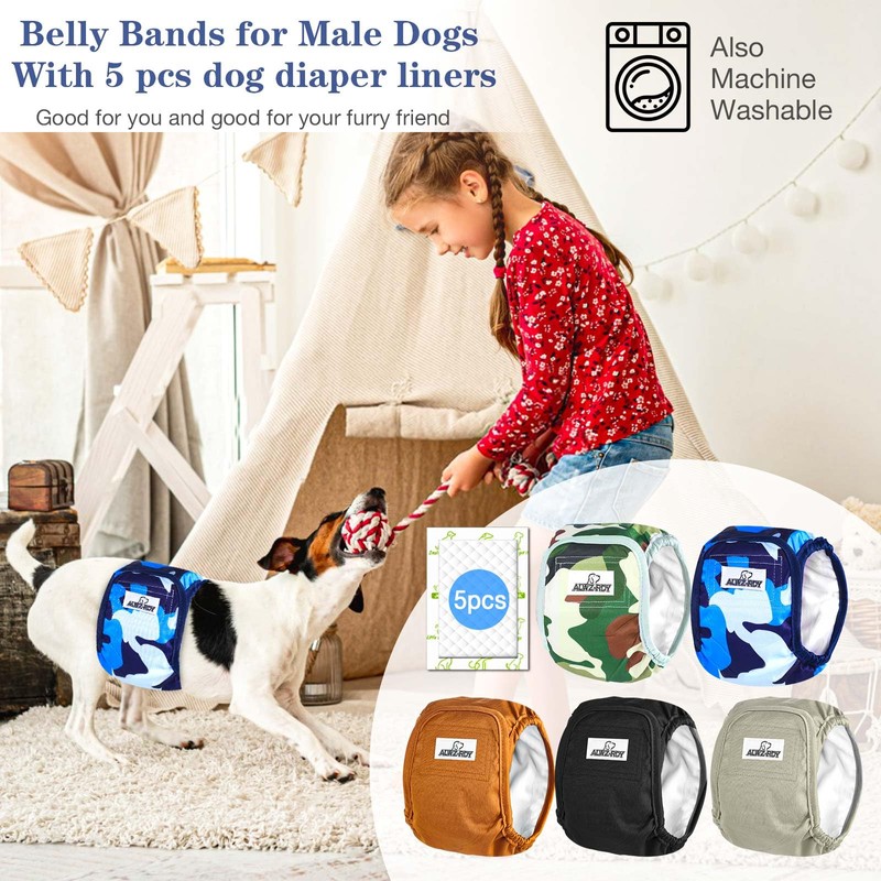 - Value Pack: The package contains 5pcs Size S male dog belly bands and 5pcs dog diaper liners for added absorbent protection, for waist 11" to 14", and perfect for untrained puppies, and dogs with incontinence due to excited urination, age, or illness