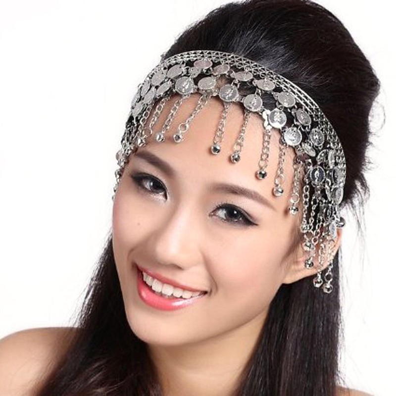 BellyLady Belly Dance Tribal Metal Headband with Silver Coins, Gypsy Egyptian Jewelry