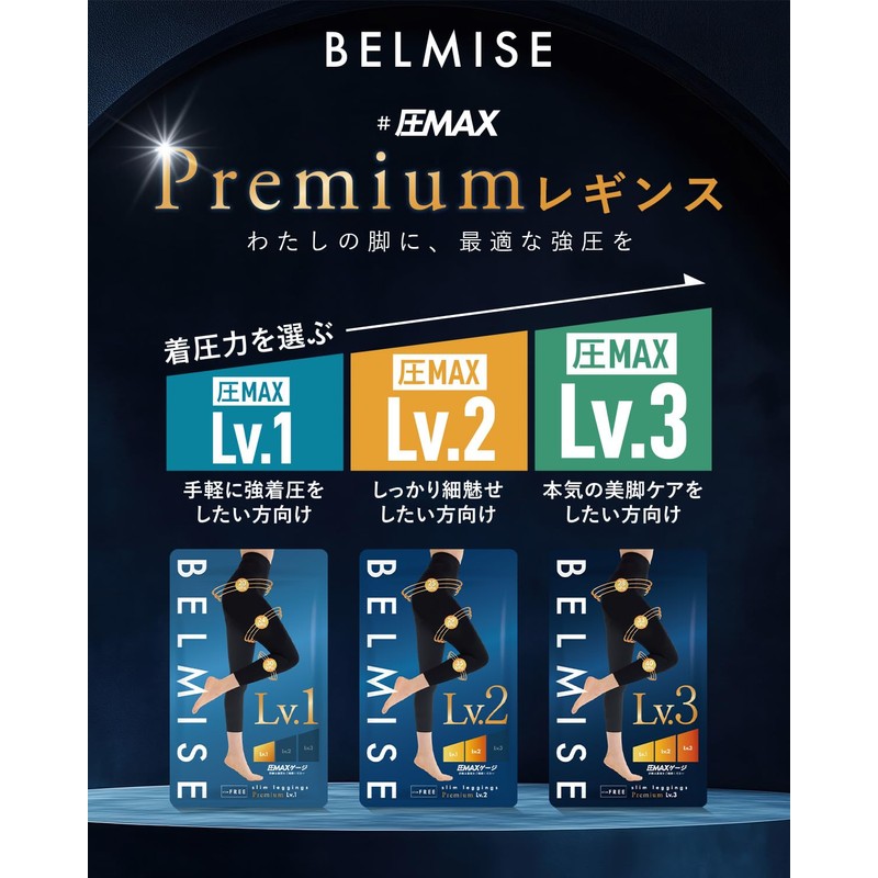 - First in the industry! Choose from Fit: Belmis's unique 3-stage design leggings that can be selected to fit your body shape and lifestyle. Give you the "just right" compression according to your mood and purpose. From first-time to first-time use, this lineup will accompany you