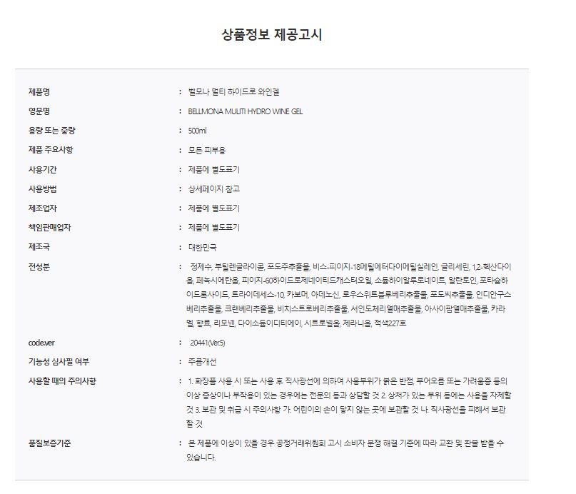 (벨모나)벨모나 멀티 하이드로 와인겔 에스테틱 화장품 - 500ml