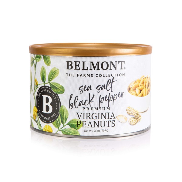 Belmont Peanuts Gourmet Sea Salt and Black Pepper Flavored Virginia Peanuts, 25 oz (1 Pack) – Only 4 Simple Ingredients, No Preservatives, 7g Protein – Salty, Peppery, Crunchy, Hand Seasoned Snack