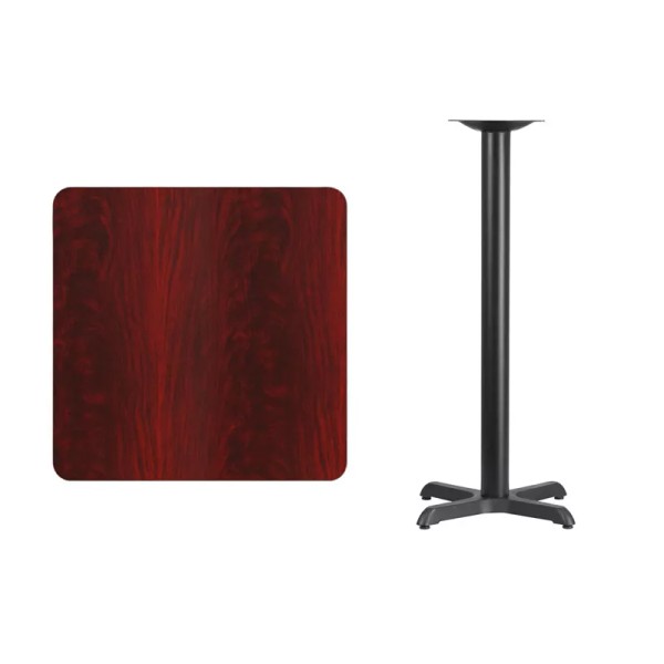 30" Square Mahogany Laminate Table Top With Base - Bar Height Restaurant Table