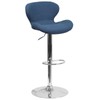 Belnick Contemporary Blue Fabric Adjustable Height Bar Stool with Chrome Pedestal Base