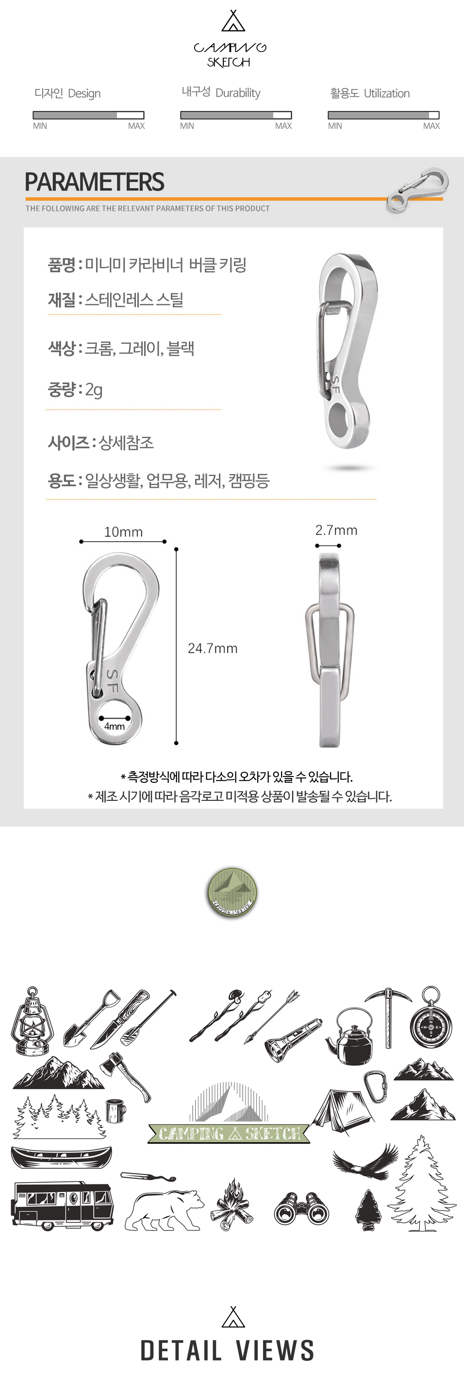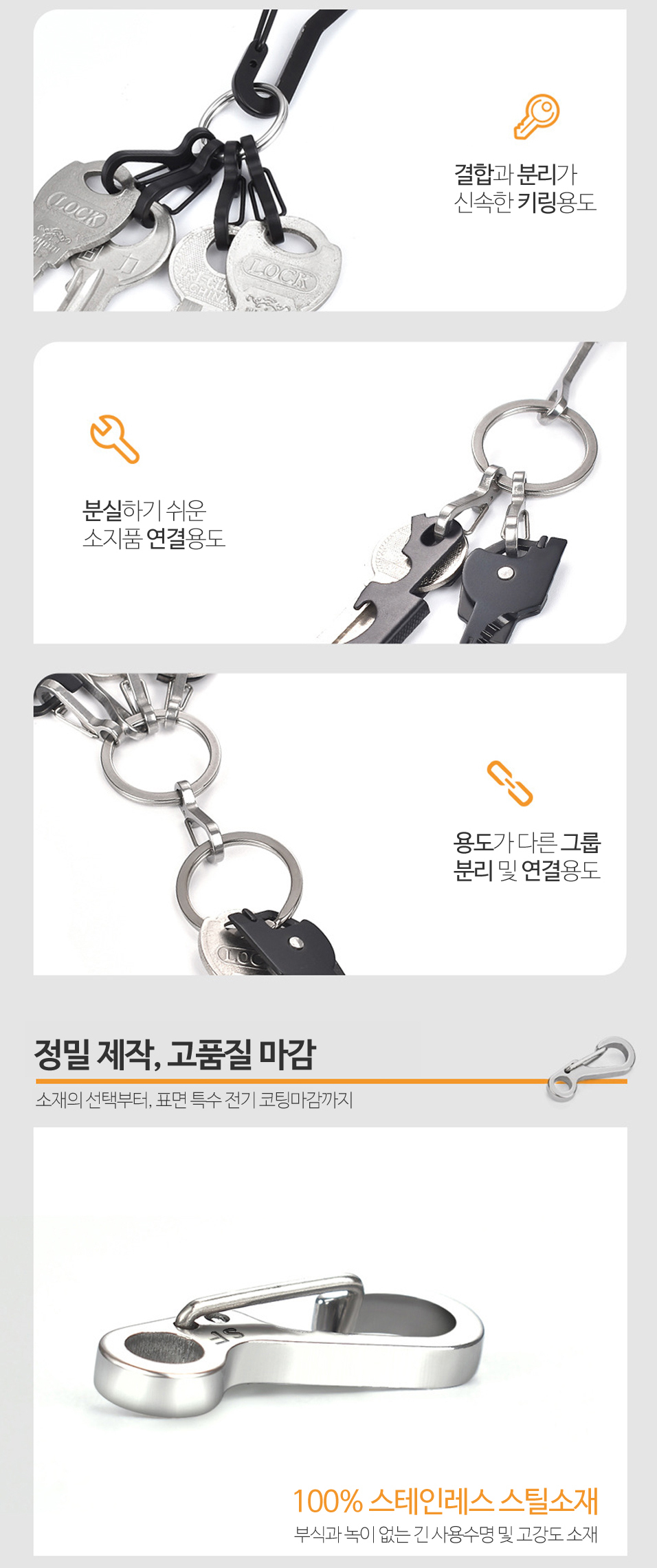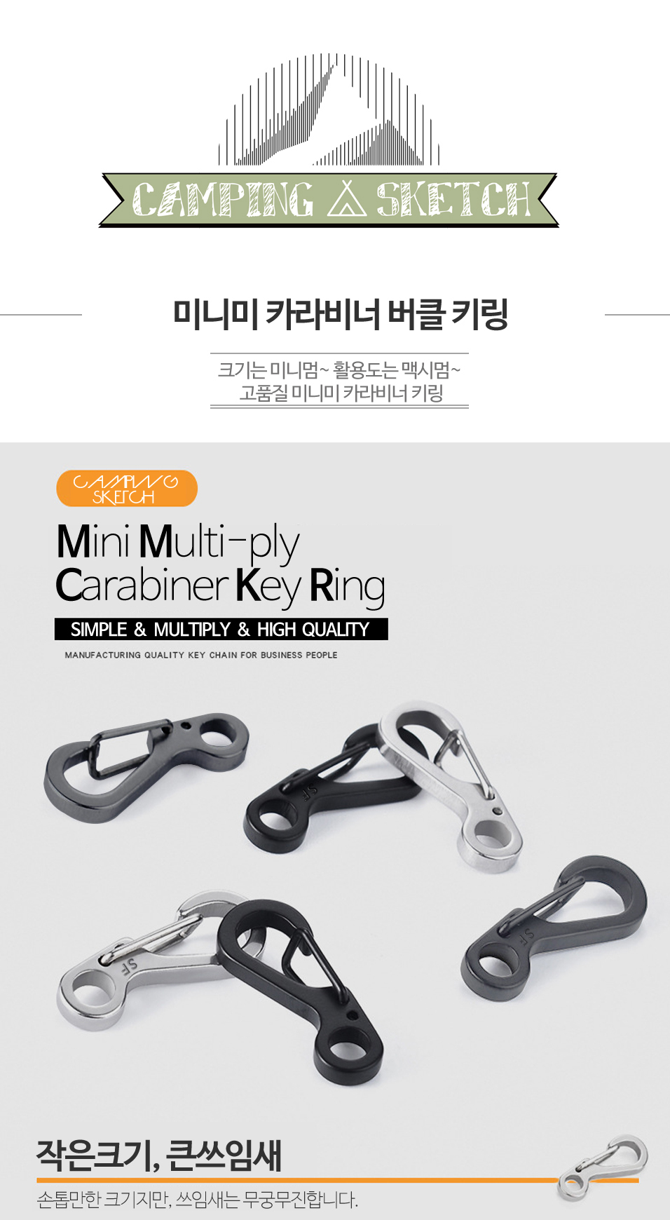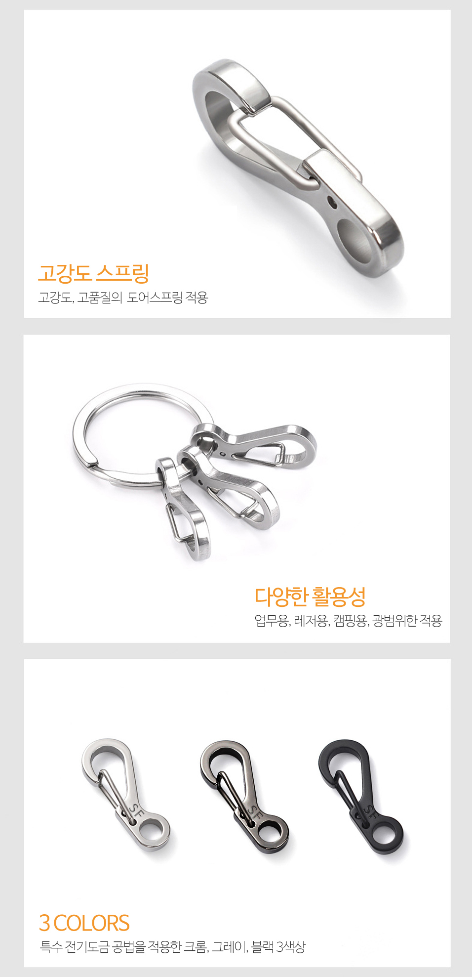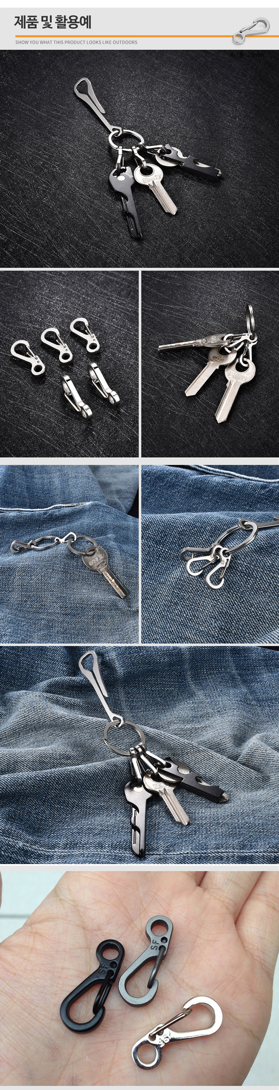 Belongings Key ring making Key ring Mini carabiner buckle 3 colors black (10163) 8ea