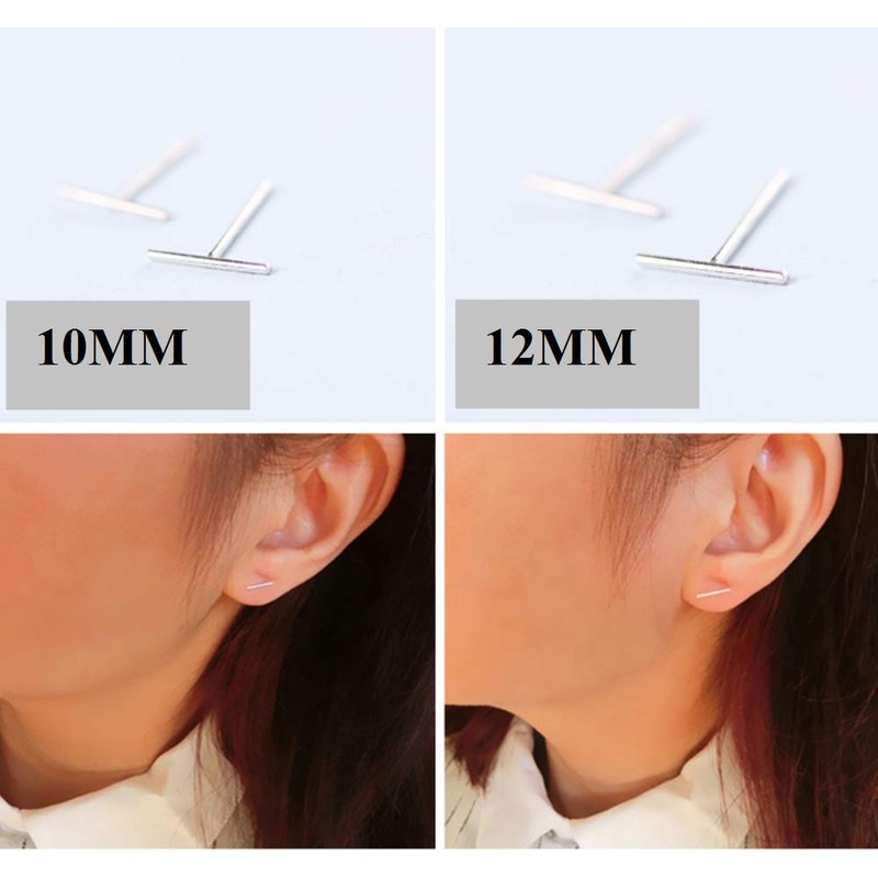 Belons 925 Sterling Silver Women's / Girls' Bar Stud Earrings 9 mm 10 mm 11 mm 12 mm, Sterling Silver, No Gemstone