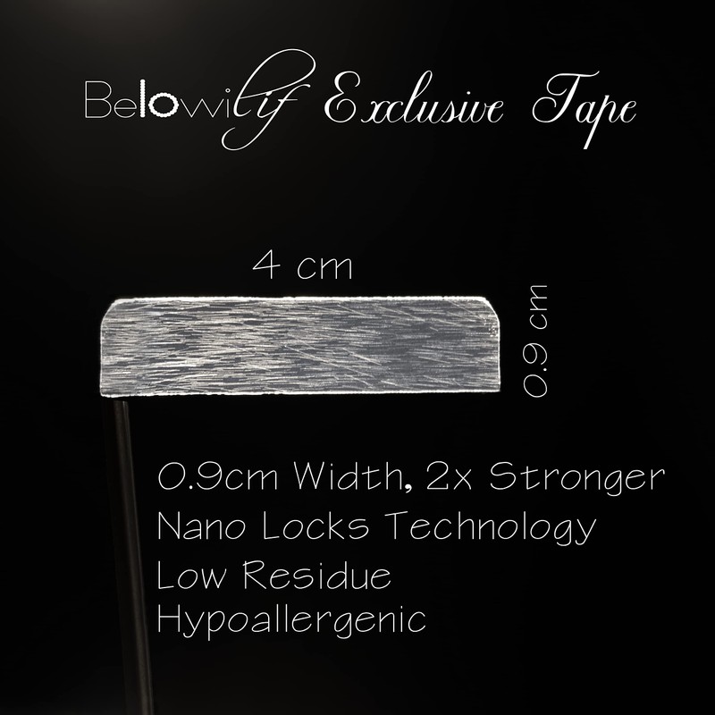 • 4 cm x 0.9 cm Tape: Most of the tape-ins adhesives on the market are 4 cm x 0.8 cm. Belowilif tape size is 4 cm x 0.9 cm. Since after scientific research, we found that the improved 0.1cm can greatly improve the durability. Our upgraded adhesive is not easy to fall off and does not leave any residue when removed.